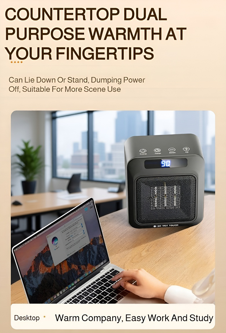 ● Compact and stylish ceramic heater designed for whole house warmth, perfect for small spaces without sacrificing efficiency. ● Features intelligent temperature control and remote operation, allowing you to adjust heat settings easily from anywhere in your home. ● Energy-saving technology ensures rapid heating while minimizing power consumption, making it both eco-friendly and cost-effective. ● Advanced safety features include tip-over and overheat protection, providing peace of mind for households with children and pets. ● Ultra-quiet operation ensures a comfortable and undisturbed environment, ideal for bedrooms, offices, and living rooms.